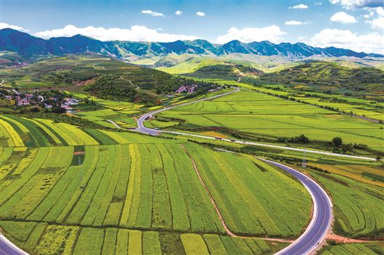 在這里,山水皆靈,無論是層巒疊嶂、云開日出,還是淳樸民俗、紅色傳奇,皆是亮眼的風景;在這里,阡陌相通,無論是紅黑枸杞、五谷雜糧,還是葡萄美酒、蘋果梨花,正成搶手的生意。路網暢通處,熙熙攘攘,日益高效的城鄉人流物流,促進了農業產業轉型升級,也讓美麗鄉村宜居宜業煥發生機……六盤山,曾經記錄下歷史轉折的奇跡,而今正見證一個擺脫貧困的新時代。