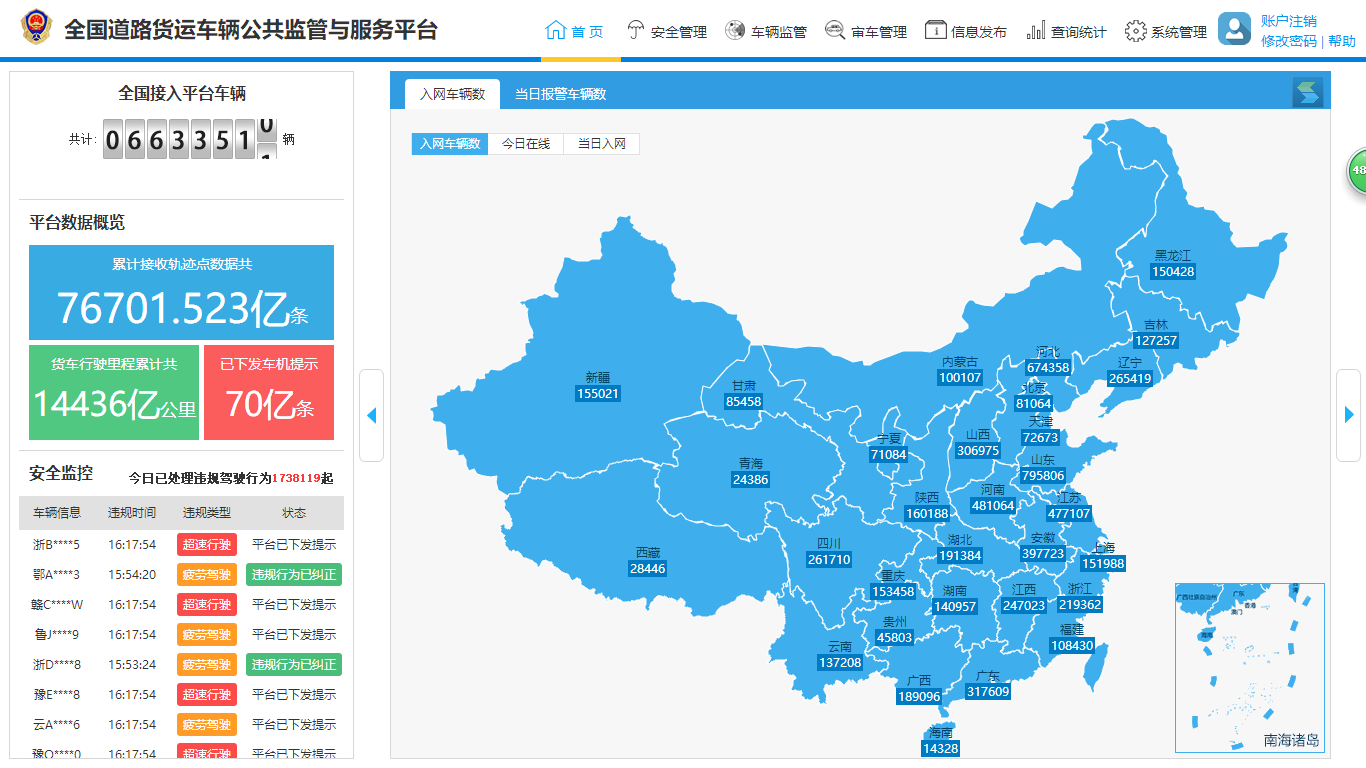 為保障貨運安全,中交興路充分運用車載終端和后臺數據分析技術,實時監測車輛動態。針對重載貨車常見的超速、疲勞駕駛問題,貨運平臺推出自動提醒、自動轉發、自動報警的自動化監管服務。2013年上線以來,貨運平臺提供駕駛風險提醒服務累計超過70億次,超速駕駛糾正率96%,疲勞駕駛糾正率36%,經過精準安全服務的車輛出險率下降超過10%,有效提升了重載貨車整體安全水平。